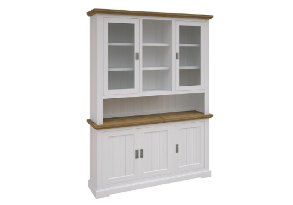 The Banksia 3-Door Buffet & Glass Hutch is the perfect combination of elegance and functionality, designed to enhance your living or dining space. Featuring glass-panelled doors, it elegantly showcases your favourite decorative pieces, while offering generous storage with a mix of open and closed compartments.