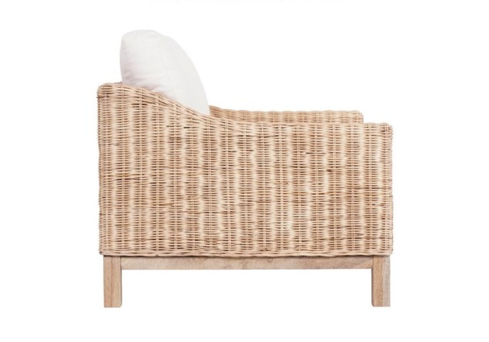 The Bowen 1 Seater Sofa seamlessly blends comfort and style, giving you the best experience possible. The Bowen 1 Seater Sofa features a sturdy Mango Wood and Rattan base and beautiful linen cushioning.