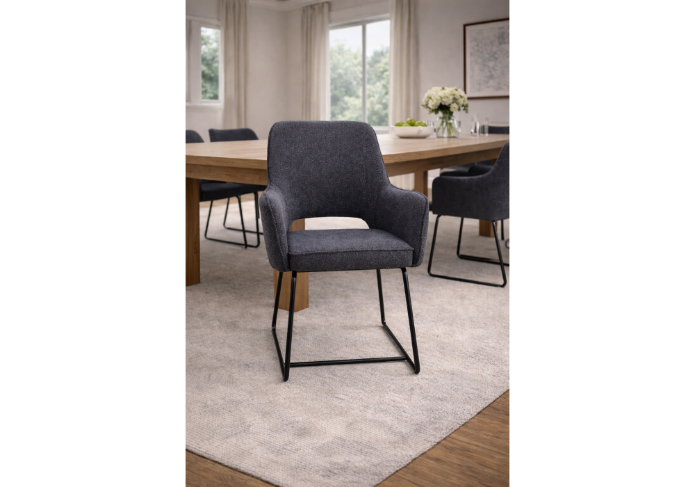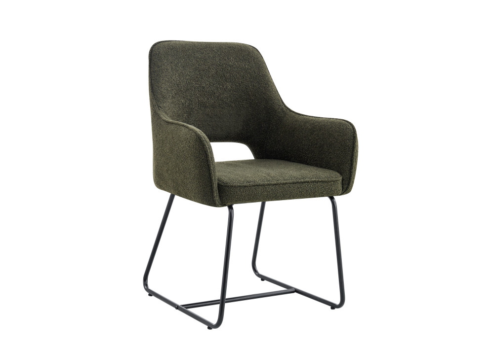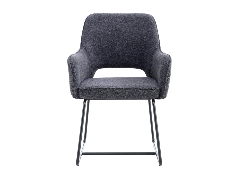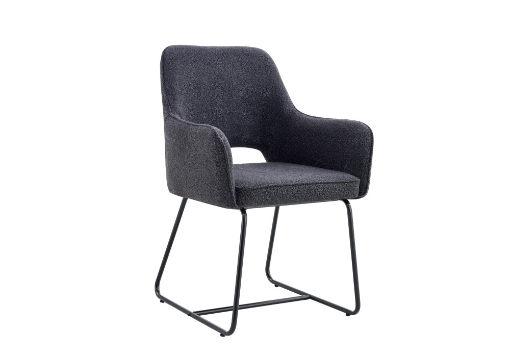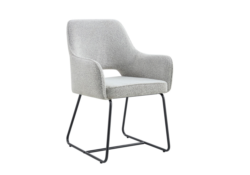 • Upholstered in soft, durable bouclĂ© fabric with high-density sponge for superior comfort and easy maintenance these dining chairs feature a reinforced middle support tube for added stability, black powder coated base and non-slip feet to protect all floor surfaces.