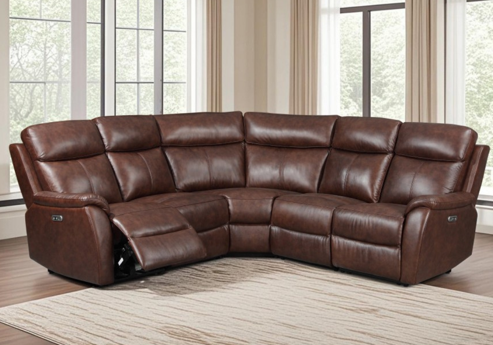• Tulsa Leather Corner Suite with Electric End Recliners