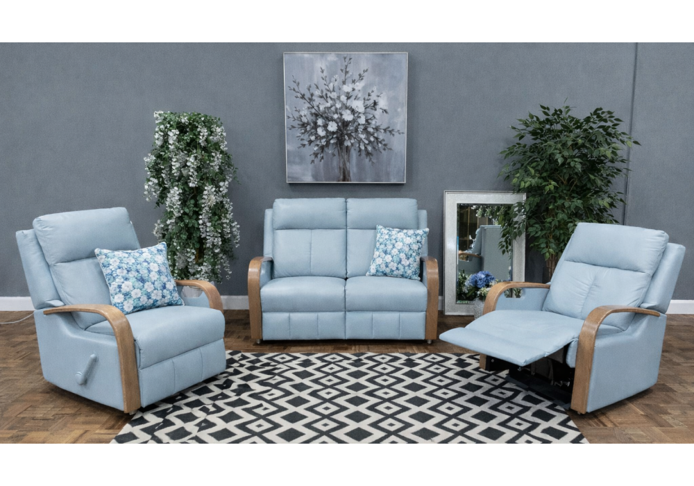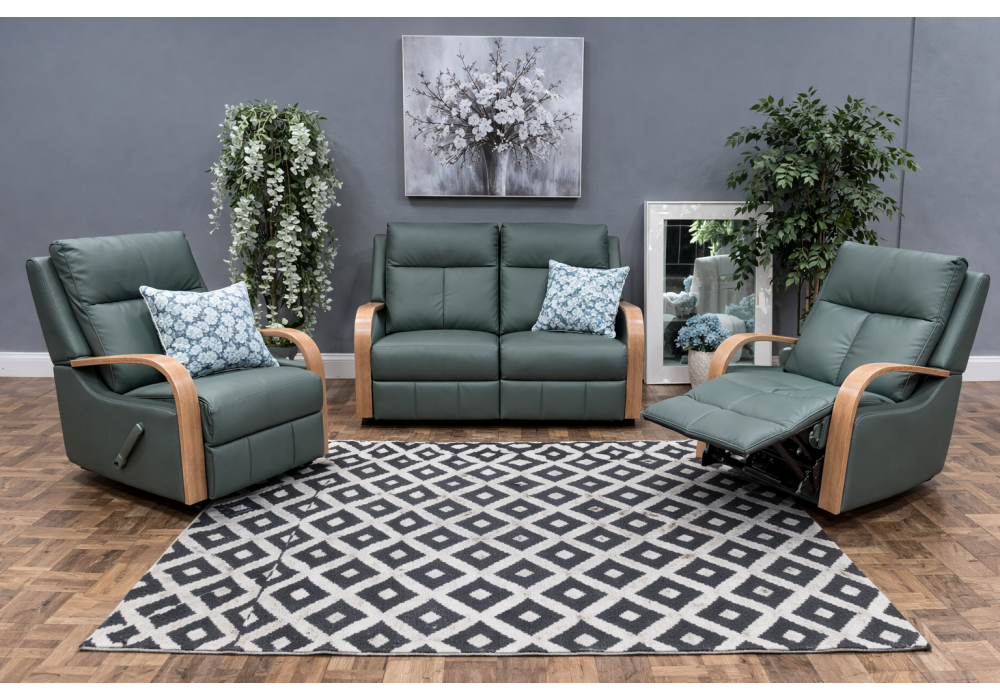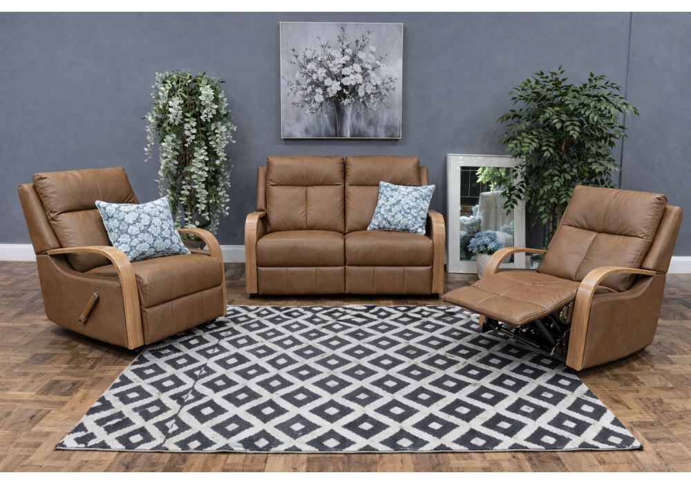 The Ascot two seater lounge with two reclining seats is perfect for those looking to entertain in style and comfort. Boasting luxurious leather upholstery and excellent head and lumber support this is a recliner the whole family will love. Solid timber frame made from FSC certified New Zealand Radiata Pinewood. Seat constructed with zigzag spring system.
