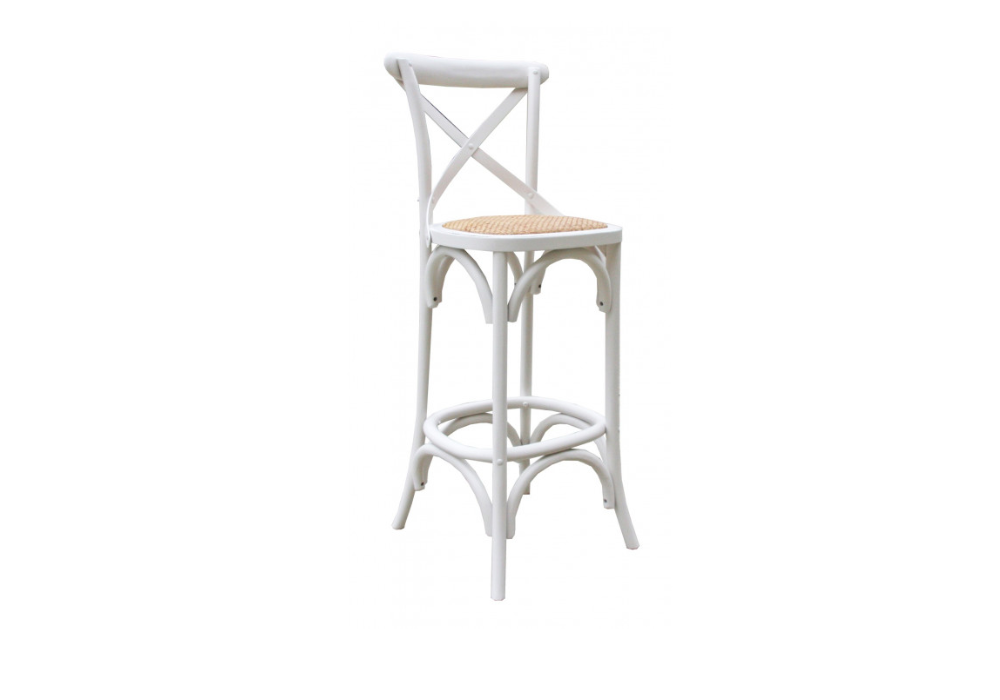 The high Bella barstools come with a gorgeous cross-back design. Made of Birch and Elm wood with a bamboo seat.