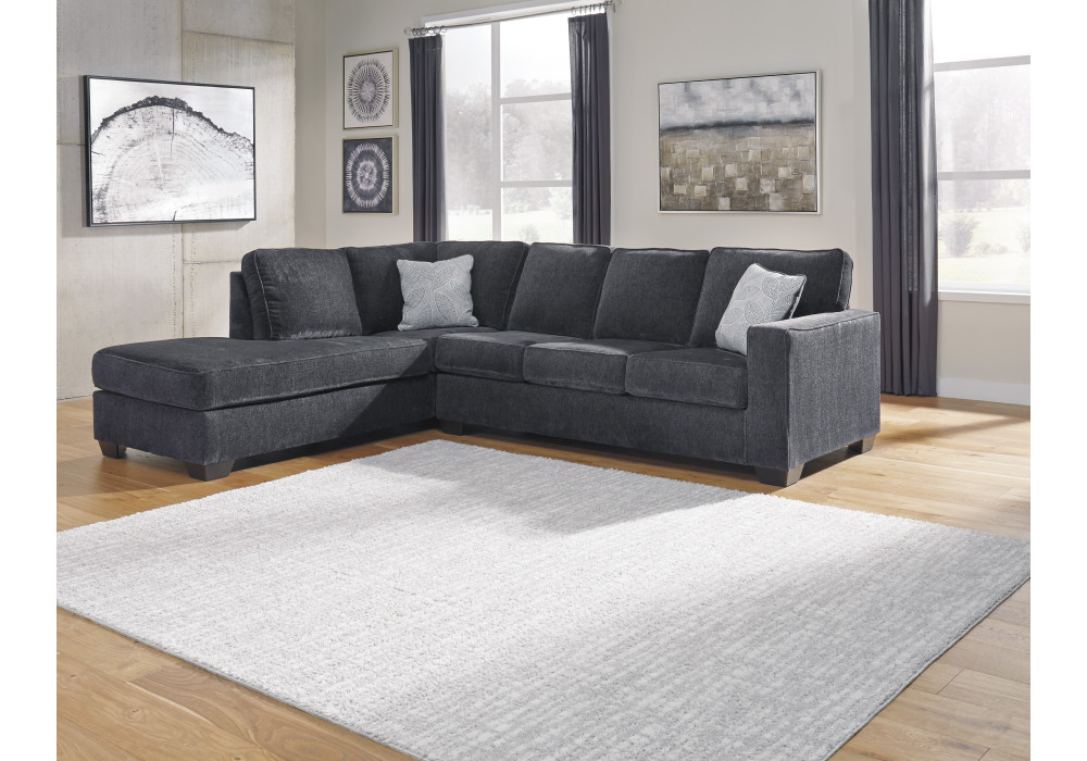 If style is the question, then this sleeper sectional is the answer. Sporting clean lines and sleek track arms, the decidedly contemporary profile is enhanced with plump cushioning and a chenille-feel upholstery, so pleasing to the touch. Sure to play well with so many color schemes, this sleeper sectional in slate gray includes a pair of understated floral pattern pillows for fashionably fresh appeal. Crafted of quality memory foam, the pull-out full mattress comfortably accommodates overnight guests.