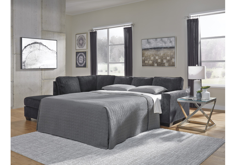 - Includes 2 pieces: right-arm facing full sofa sleeper and left-arm facing corner chaise