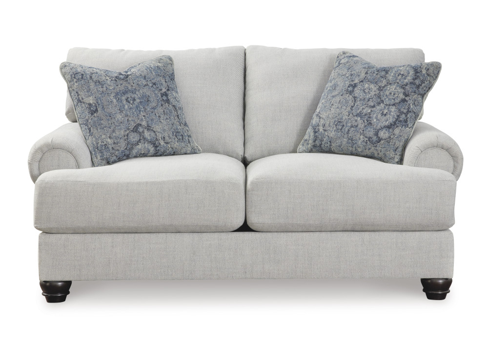 If you like the idea of a richly versatile “transitional” look that feels fresh and contemporary—with a timeless classic sensibility—feast your eyes on this loveseat. Its soothing neutral upholstery with ribbed texture, a delightful change from the ordinary, is sure to feel right at home now and in the future.