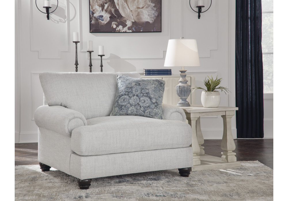 If you like the idea of a richly versatile “transitional” look that feels fresh and contemporary—with a timeless classic sensibility—feast your eyes on this oversized chair. Its soothing neutral upholstery with ribbed texture, a delightful change from the ordinary, is sure to feel right at home now and in the future.