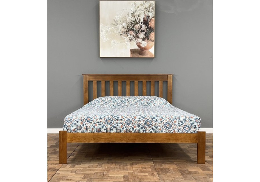 The Cronulla Double Bed is a beautifully crafted wooden bed frame from our Cronulla range, designed to bring warmth and timeless style to your bedroom. Made from solid pine, it features a rich stained finish that highlights the natural beauty of the wood, ensuring it will be a lasting addition to your home.