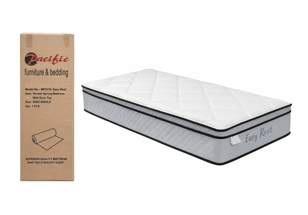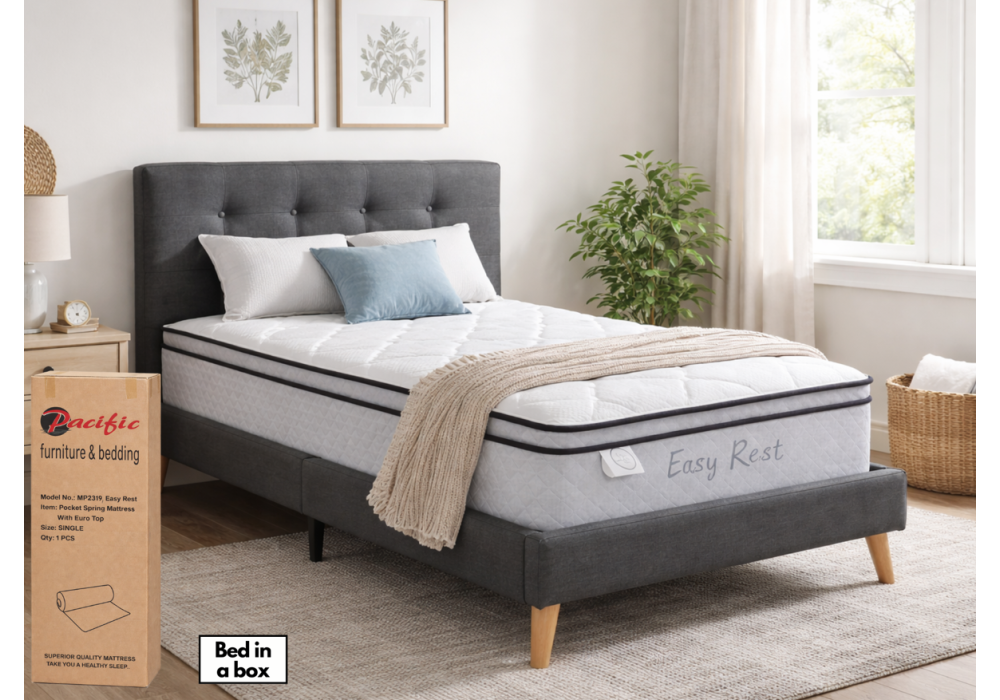 Featuring a supportive pocket spring core paired with a plush Euro-top feel, the Easy Rest delivers balanced comfort for a great night’s sleep. It’s an ideal choice for spare rooms, apartments, kids’ bedrooms, or everyday use — combining practicality with dependable comfort in a smart, space-saving design.