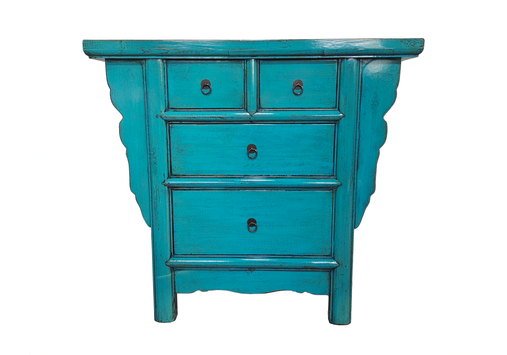 The Fengway Cabinet is a hand-crafted Chinese Antique, that comes in a beautiful aqua-blue colour. Make a statement with this stunning piece. Made from Pine and Plywood.