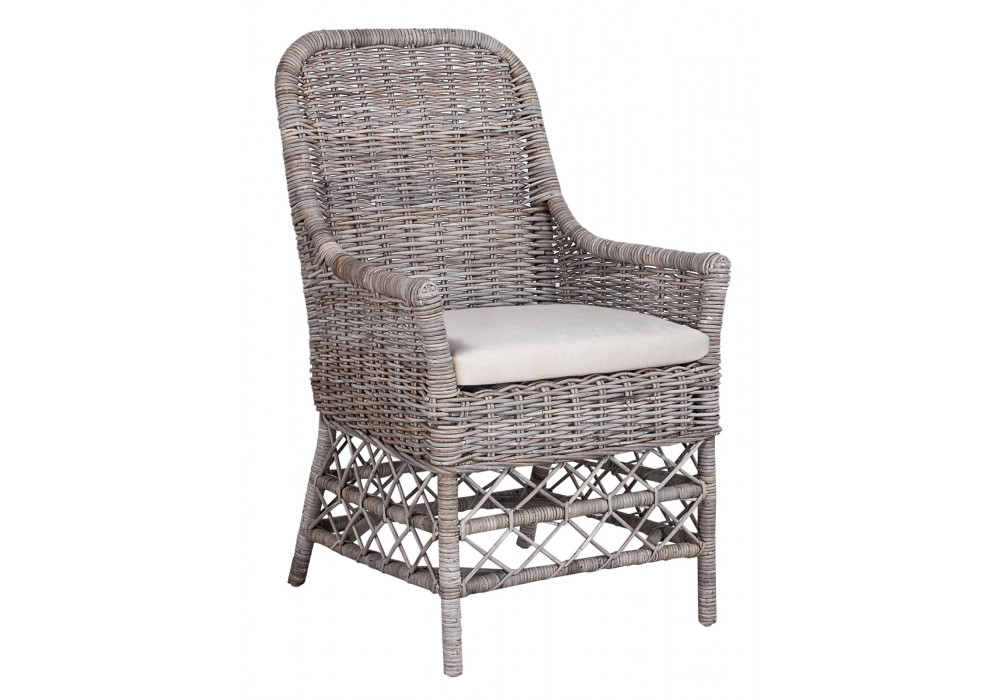 The lovely Ubud Chair will add a touch of Balinese charm to your home. Made from Rattan pole. Cushion upholstery made from linen.