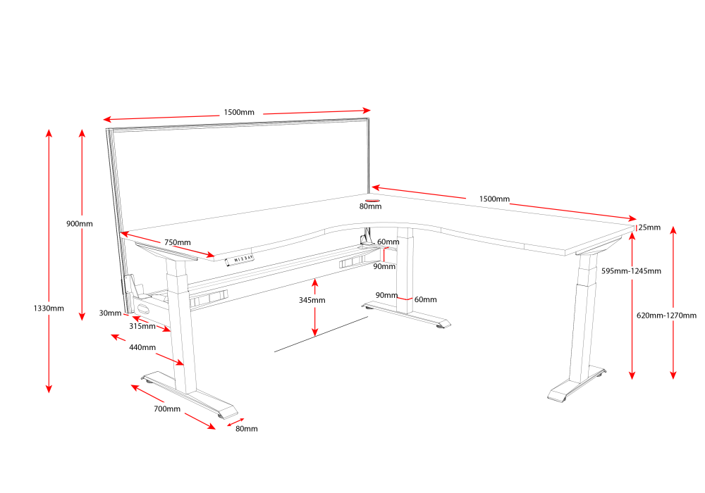 Boost+ Corner Workstation - 1800mm x 1500mm x 750mm