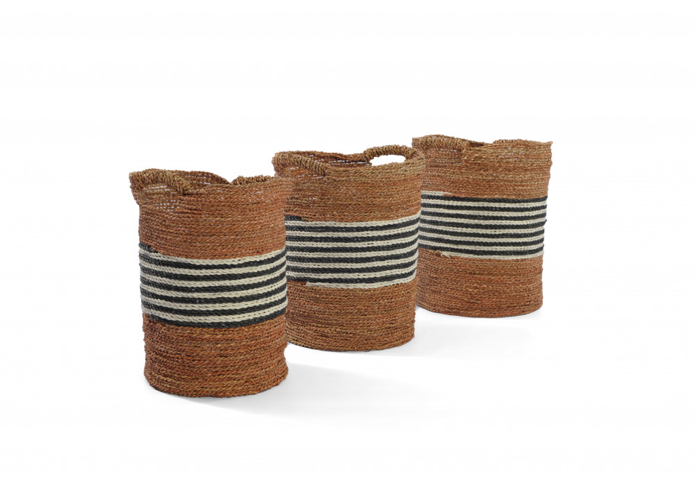 This lovely Takura set of 3 baskets are the perfect storage solution for your home. Made from natural seagrass with synthetic black and white raffia striping.