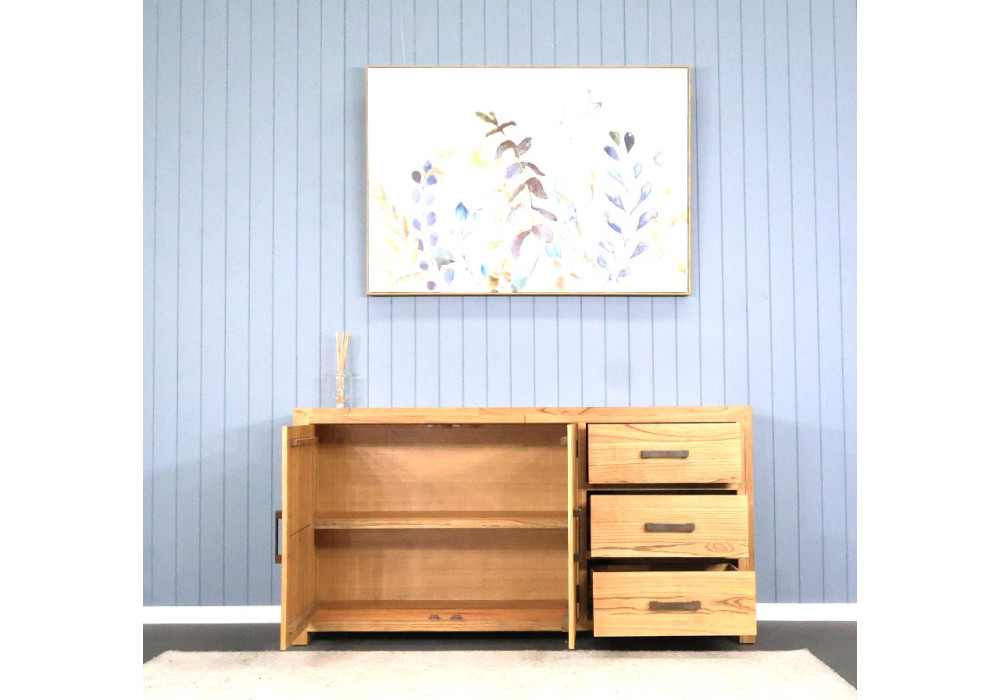 Featuring 3 spacious felt lined drawers with smooth metal runners and hinges, and 2 shelves behind 2 doors the Rozelle Buffet is perfect for dining or living spaces.