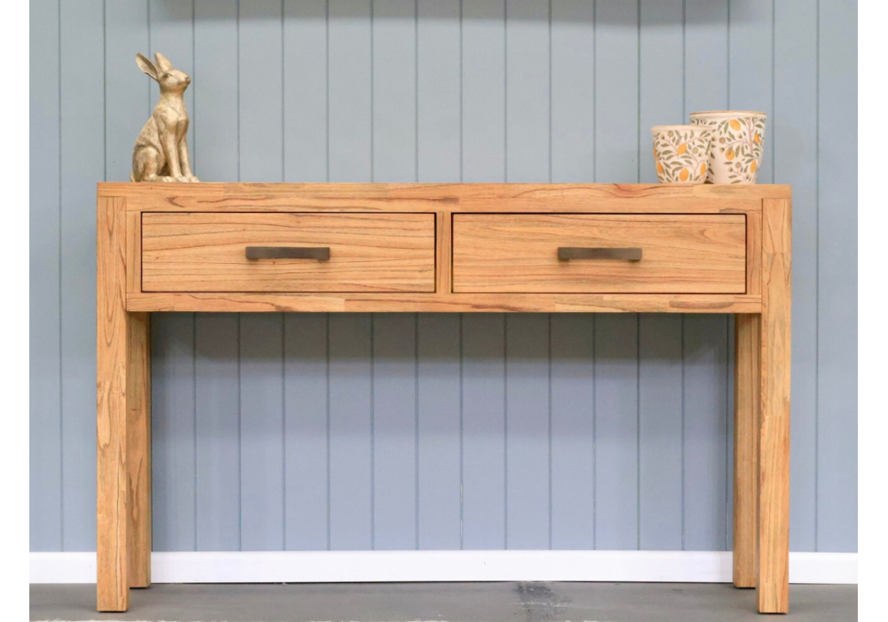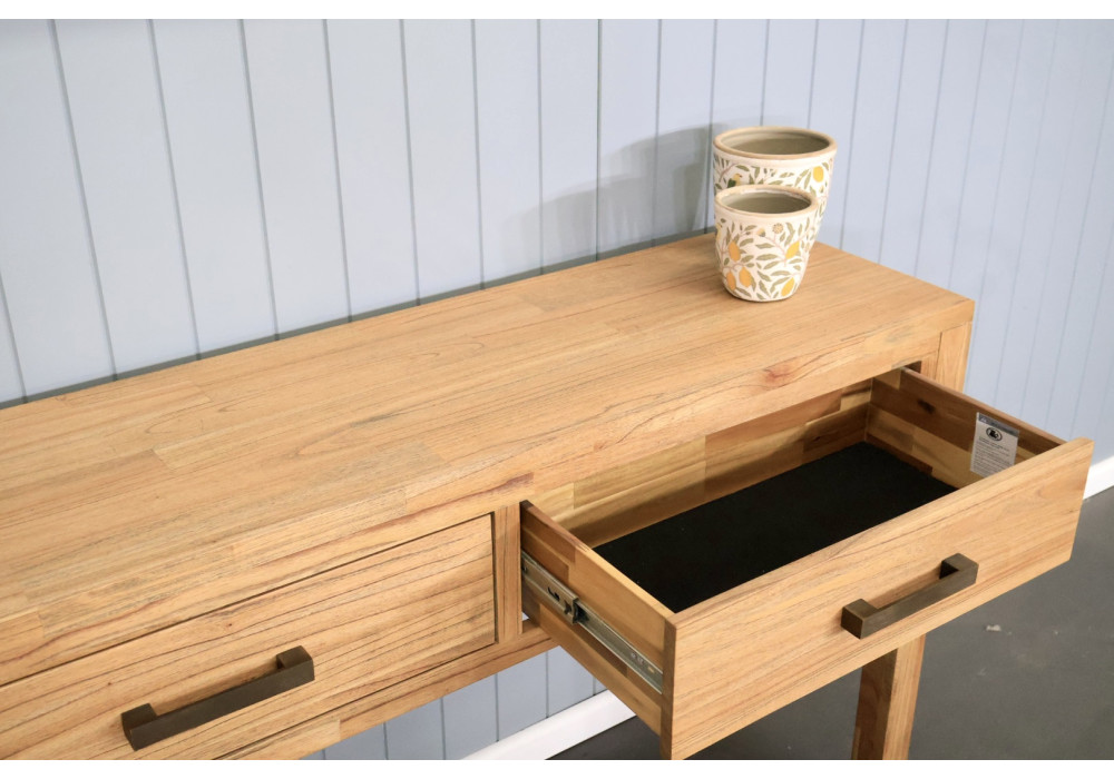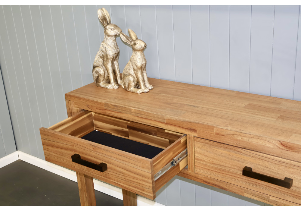 Perfect for hallways, entryways, or behind a sofa, the Rozelle Console Table features a slim profile, two felt lined drawers.