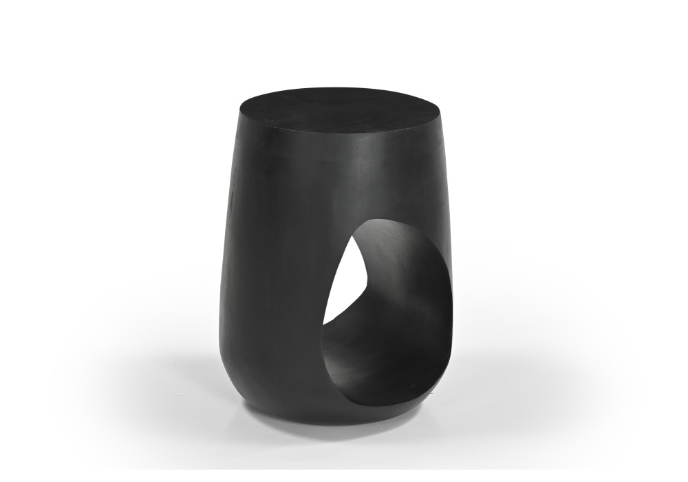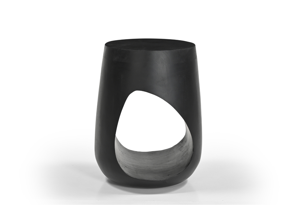 The Kindu Stool is a striking blend of modern design and natural craftsmanship. Made from durable mango wood and finished in a smooth, matte black, this sculptural stool brings effortless style to any space.