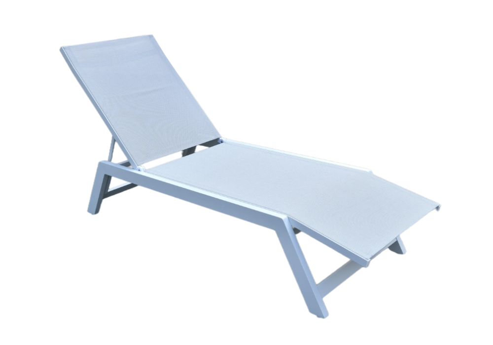 - Aluminium Frame: The sun lounge features a lightweight yet strong aluminum frame, powder-coated in white for a sleek, contemporary look. The high-quality finish ensures resistance to corrosion and outdoor wear.