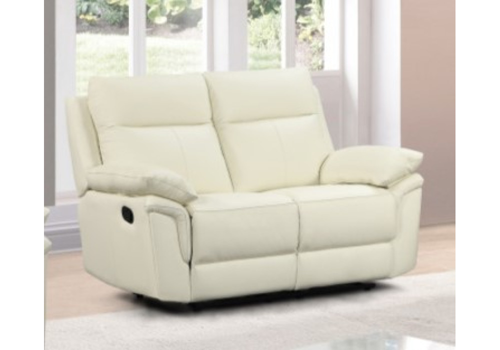 Matteo Leather 2 Seater Reclining Lounge - Cream