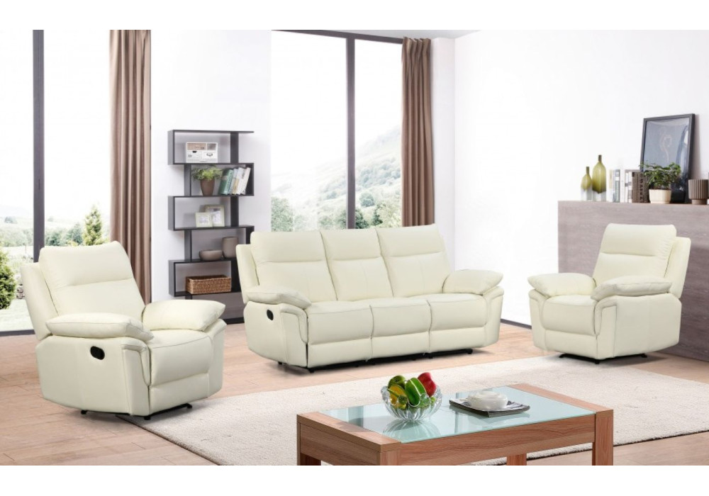 Matteo Leather 3 Seater + 2 Recliners Lounge Suite - Cream