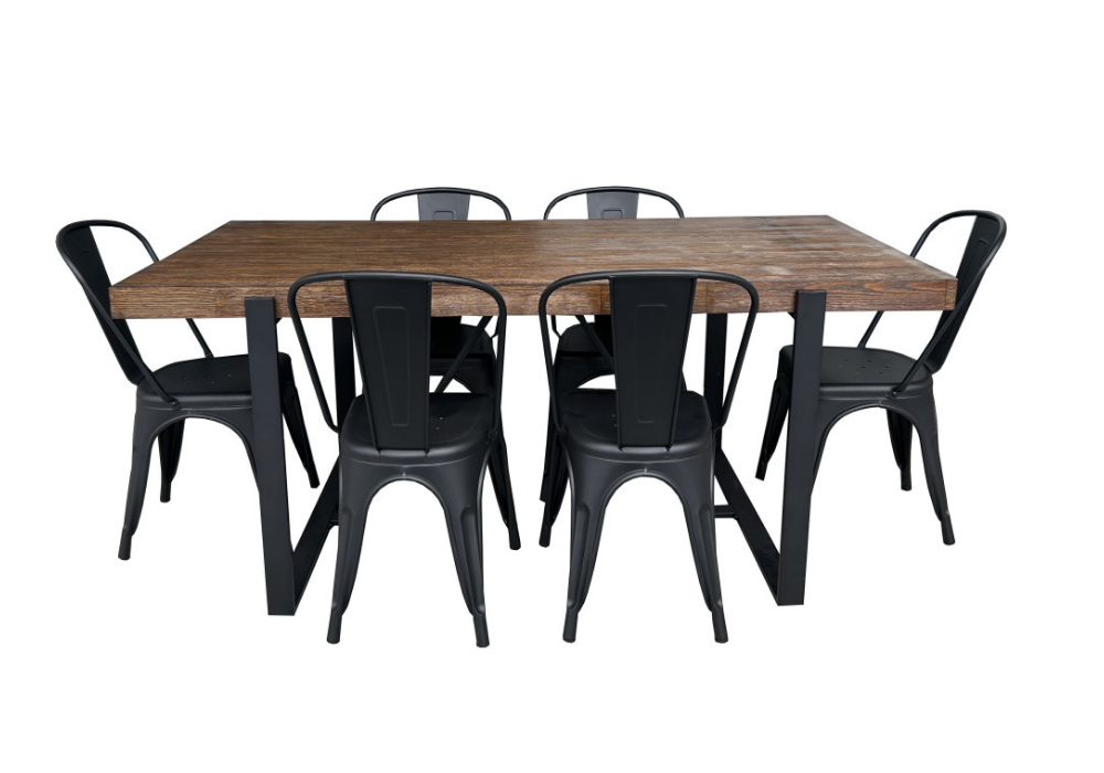 The Ned 7-piece dining set stylishly combines metal and timber for an industrial twist adding urban sophistication to your home. Made from solid pine timber with a powder-coated steel frame.