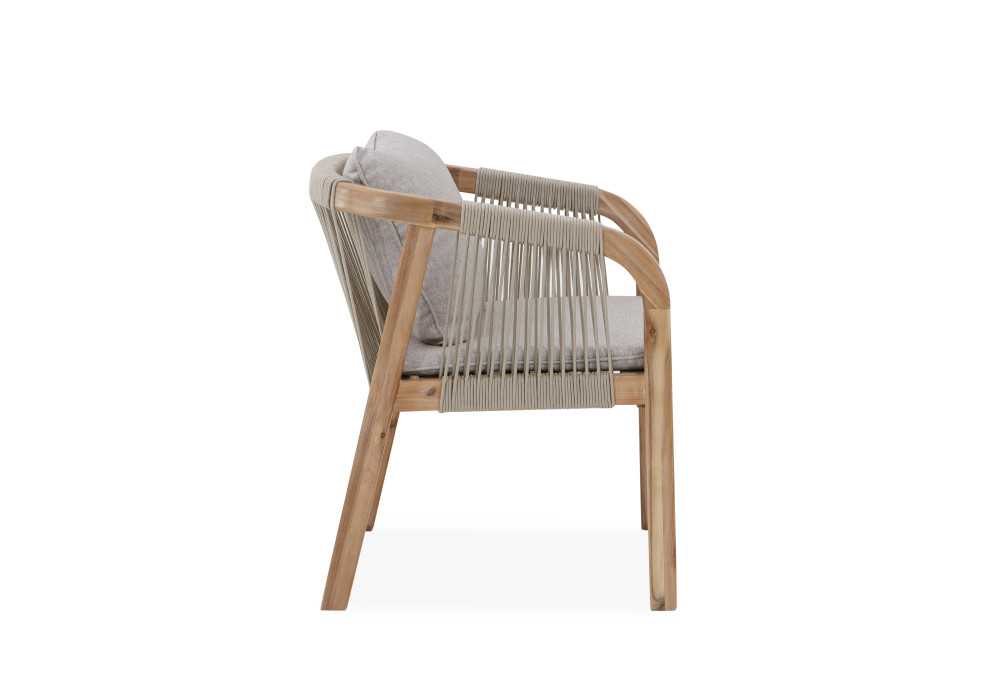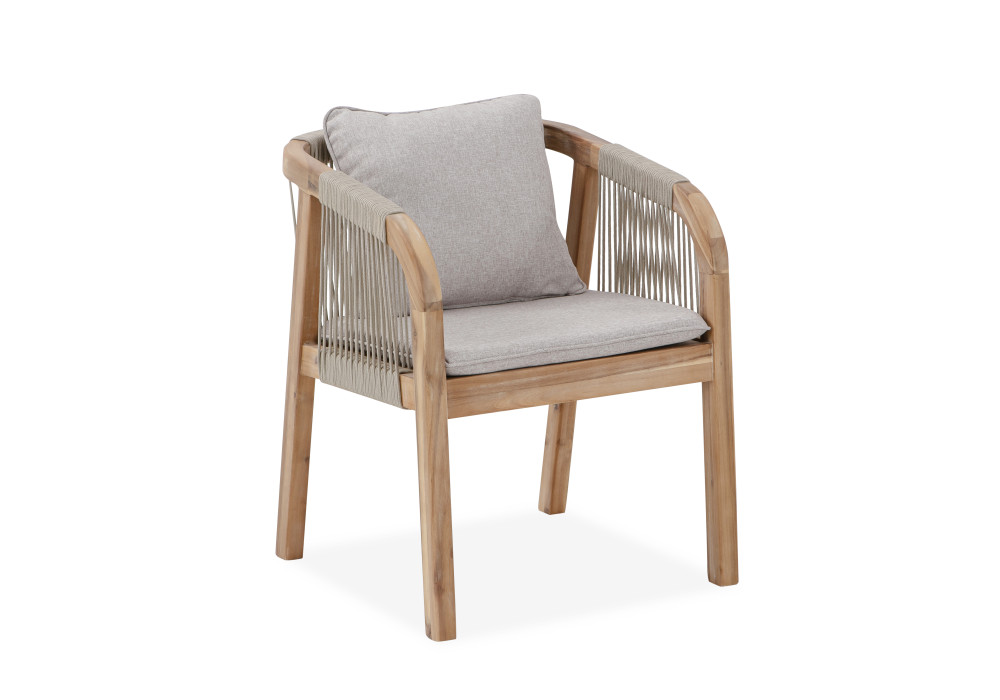 Constructed from sustainable Acacia Timber, known for its remarkable strength and weather-resistant properties, this furniture set is designed to withstand the elements while retaining its natural charm. The seat cushion covers are made from Olefin, a durable synthetic fiber that enhances comfort and ensures long-lasting use.