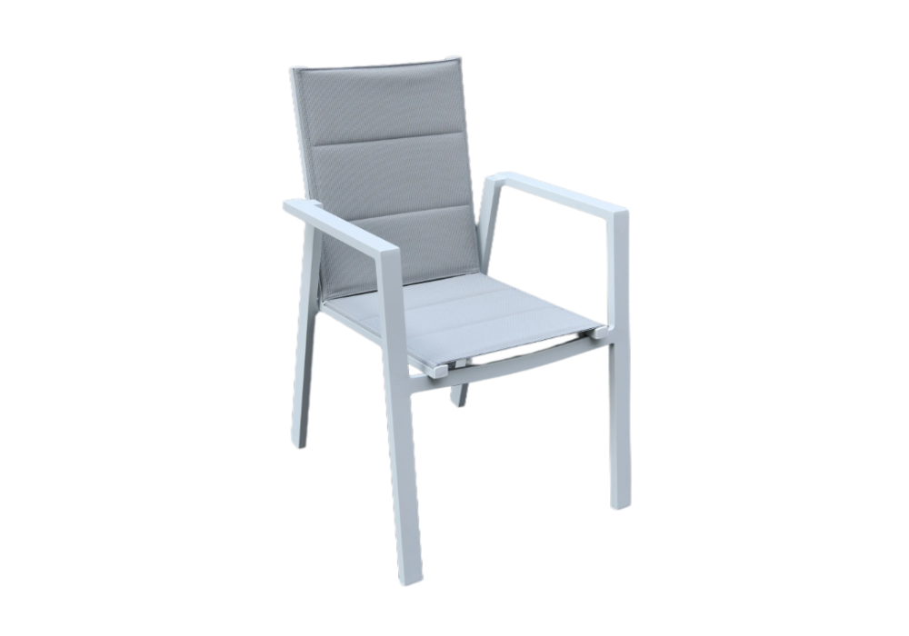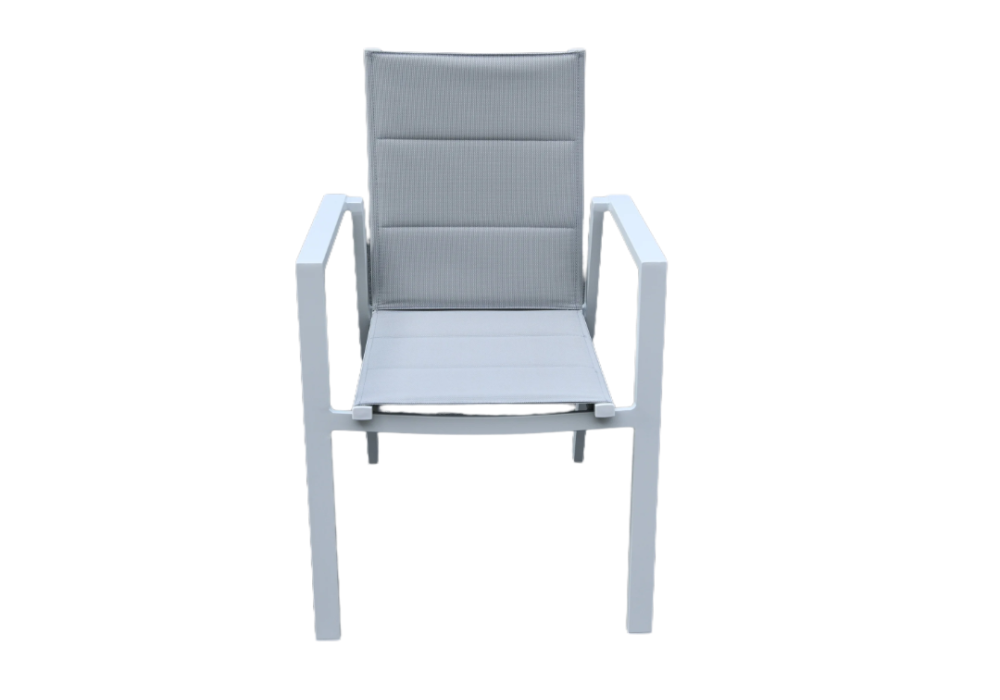Seat & Back: The seat and backrest are padded with high-quality grey textilene fabric, offering breathable comfort and ideal for outdoor conditions.