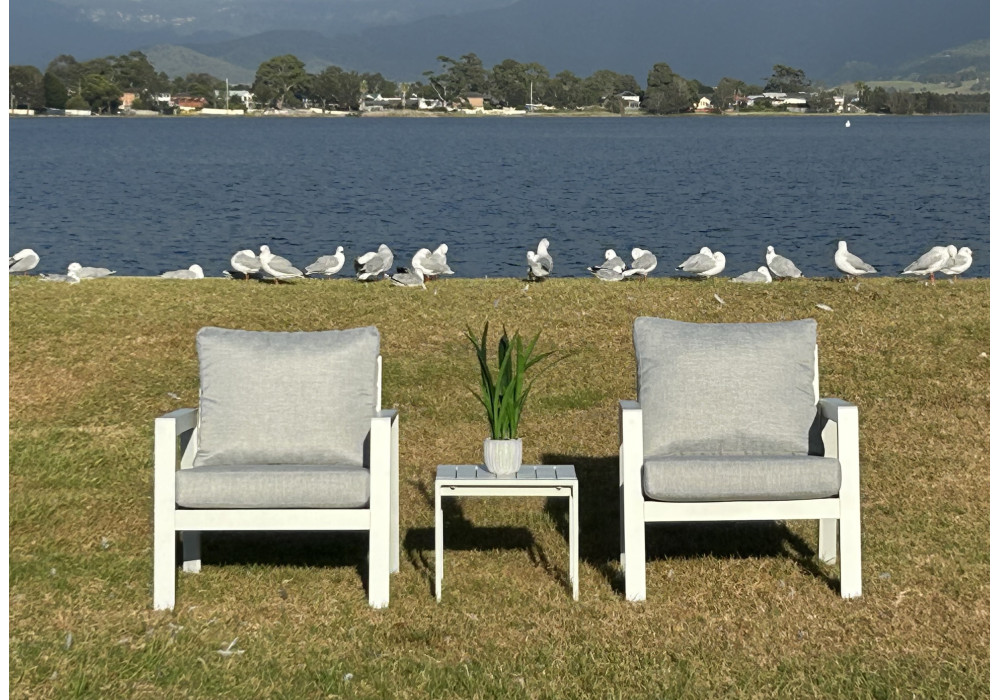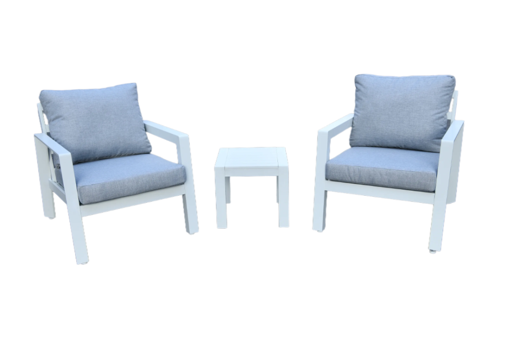 The Portsea 3pce Outdoor Balcony Setting is the perfect choice for smaller outdoor spaces, providing style and comfort with a sleek, modern design. This set includes two single chairs and a compact coffee table, ideal for relaxing and entertaining on your balcony, patio, or terrace. With a durable aluminum frame and comfortable cushions, the Portsea 3pce Outdoor Balcony Setting is designed to elevate your outdoor experience.