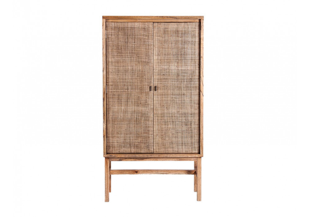 Made from solid Mindi wood and featuring brown-wash webbing on the smooth-opening doors, this piece brings warmth and natural texture to any room.