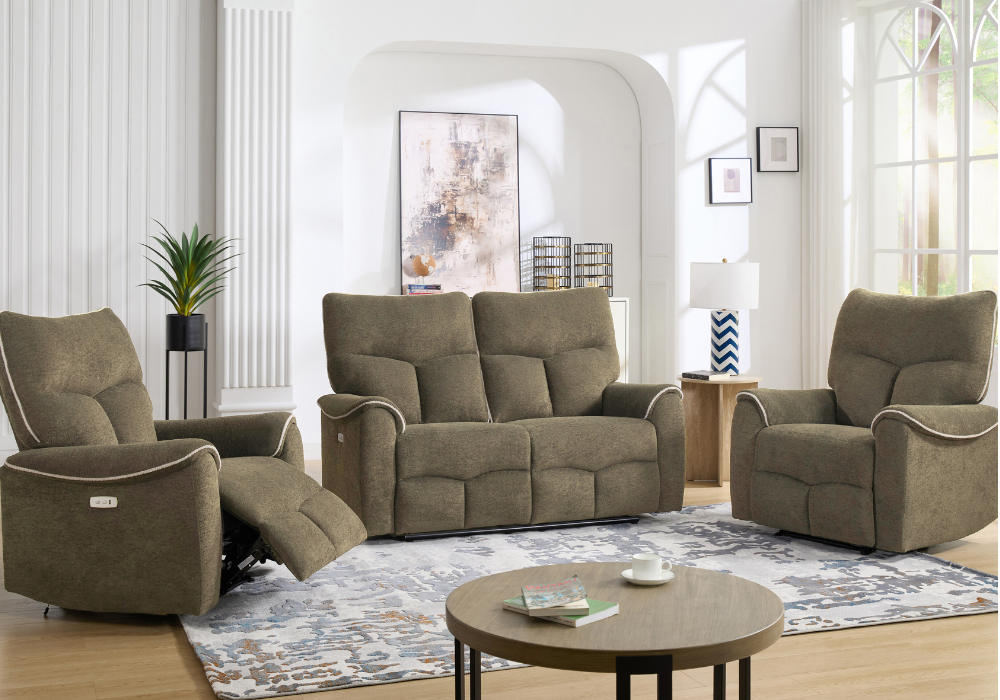 Electric Reclining System: Enjoy effortless comfort with a simple push of a button. Each recliner smoothly adjusts to your preferred position, whether you're sitting upright or fully reclining, ensuring the perfect relaxation spot every time.
