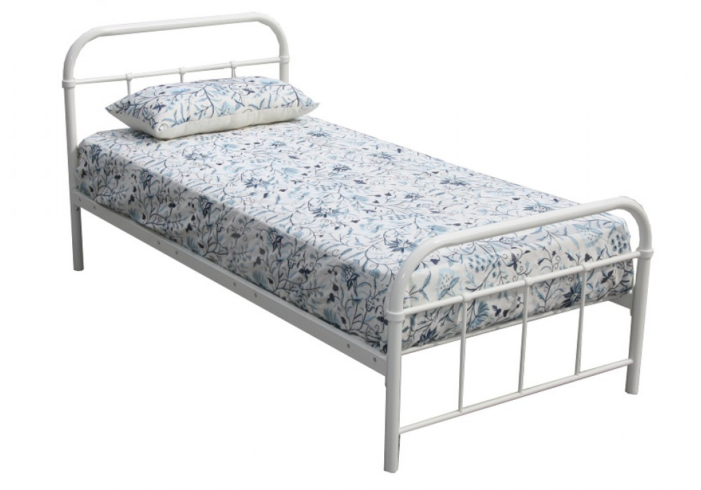 Beautiful metal bed available in white, charcoal or yellow.