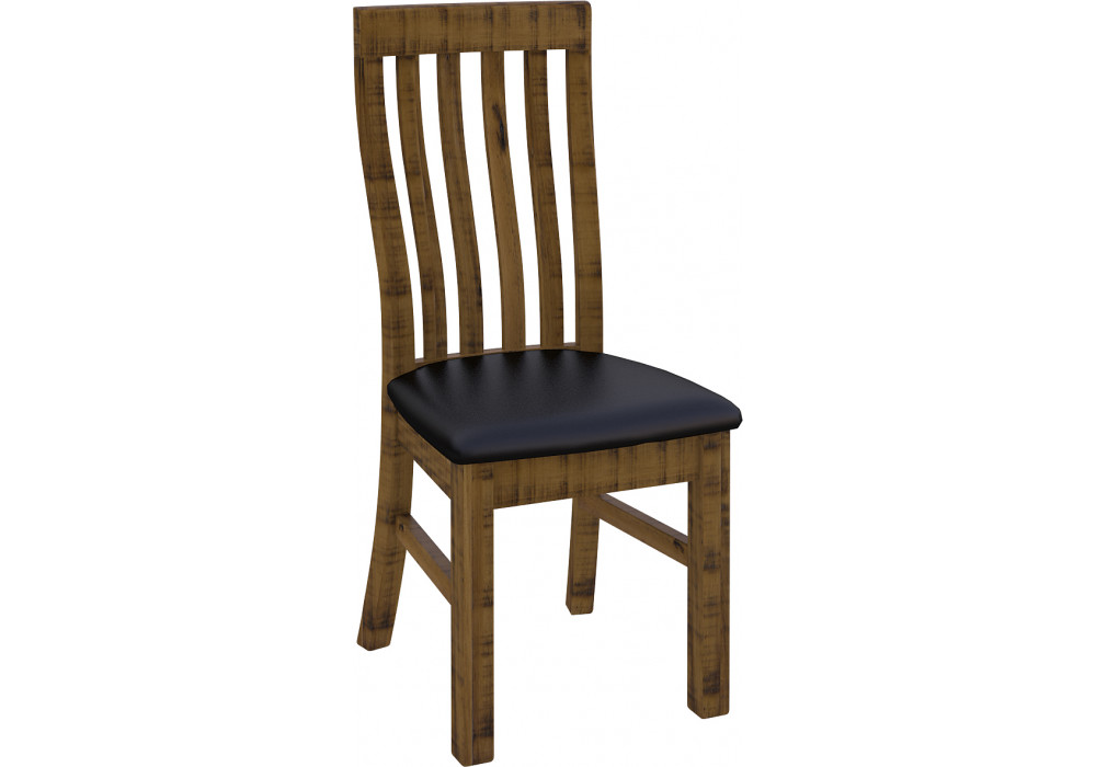 The Woolshed Dining Chair combines timeless federation-style elegance with comfort and durability. Crafted from solid pine timber in a warm Rustic Oak colour and finished with a protective lacquer, this chair is designed to showcase natural character and last for years to come. Featuring a black upholstered PU leather cushion, it offers superior seating comfort while retaining its classic charm.