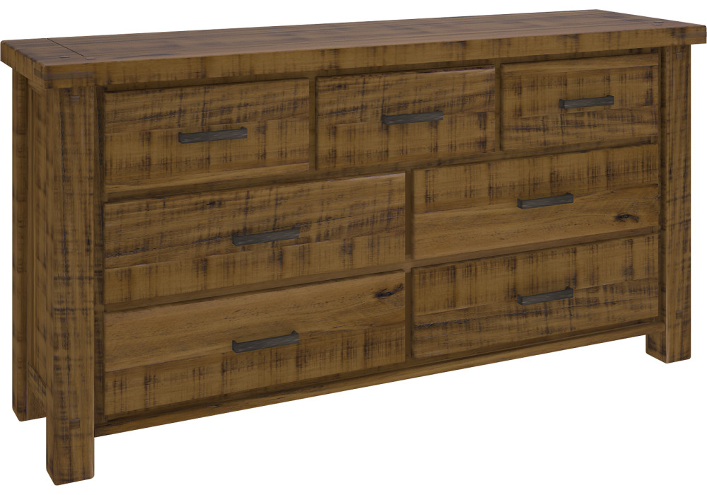 The Woolshed Dresser is a stunning federation-style piece that blends timeless design with practical storage. Crafted from solid pine timber in a Rustic Oak colour and finished with a durable lacquer, this dresser showcases natural character while offering long-lasting protection. Featuring seven drawers fitted with smooth metal runners and finished with solid metal handles, it combines elegance with everyday usability.