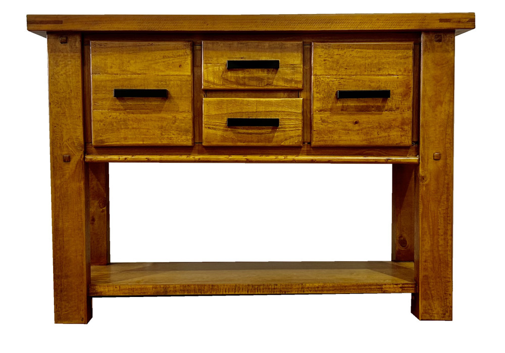 With its timeless federation design, the Woolshed Hall Table adds warmth and elegance to any home. The Rustic Oak finish highlights the natural beauty of pine timber, while the drawers provide convenient storage for keys, mail, or accessories. A versatile and stylish piece, it pairs beautifully with the rest of the Woolshed range.