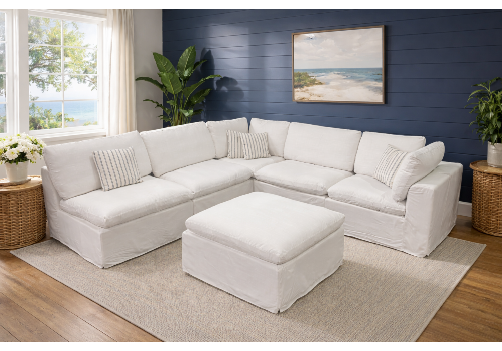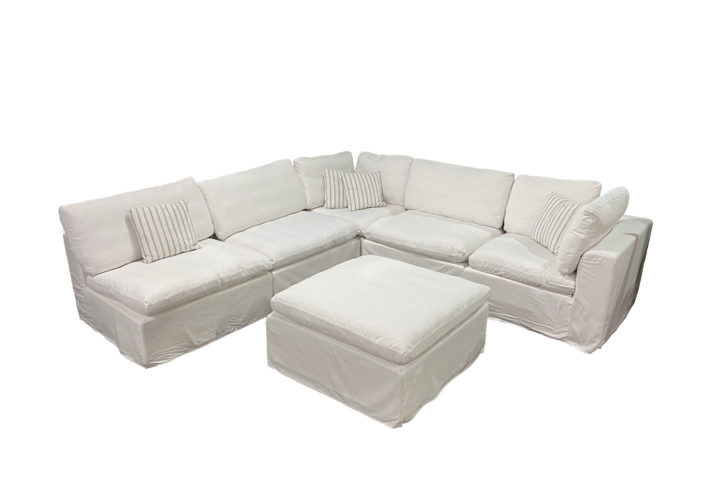 The stylish and ultra comfortable York Chaise Suite with Ottoman will add a modern and contemporary feel to your home. It comes with two arm-pieces, three armless pieces and an ottoman, which may be arranged in a number of different ways.